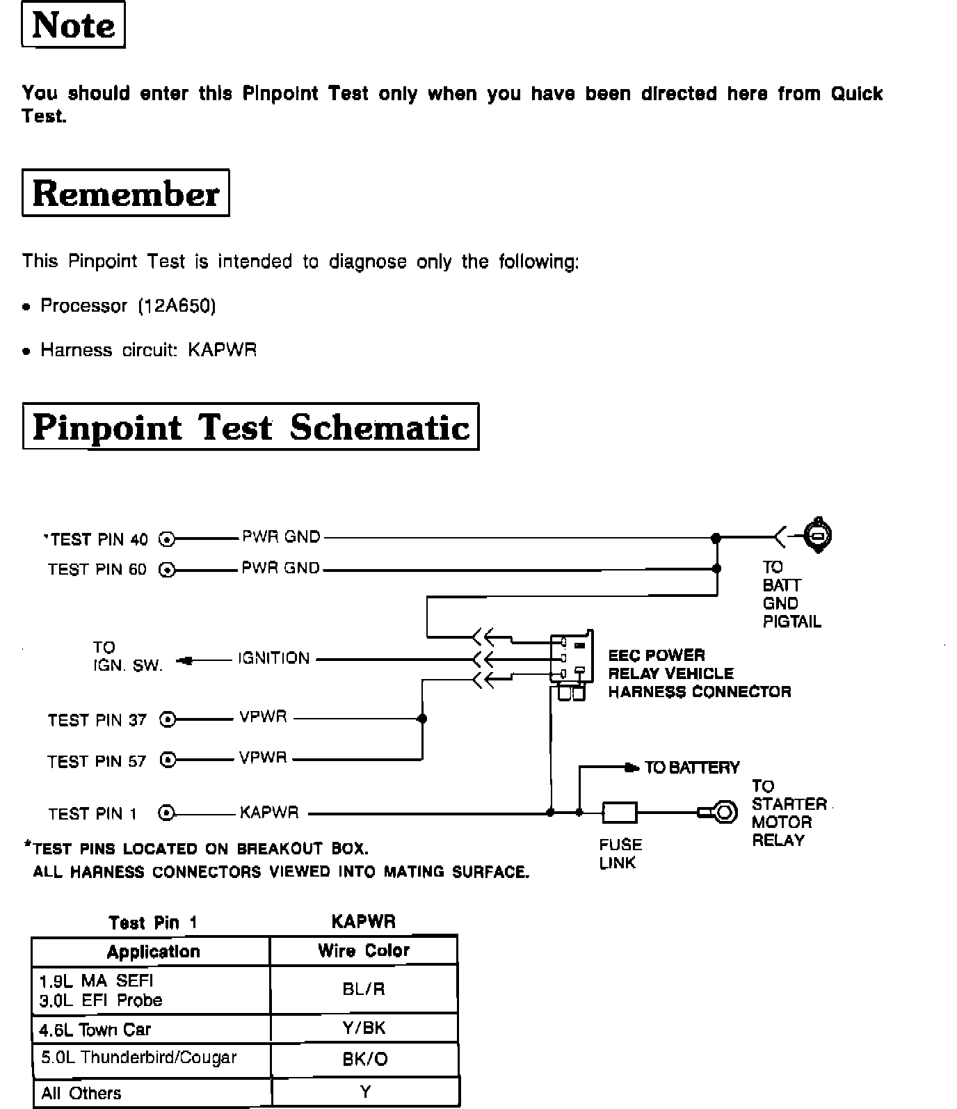 Pinpoint Test QB, Testing Notes And Schematic: