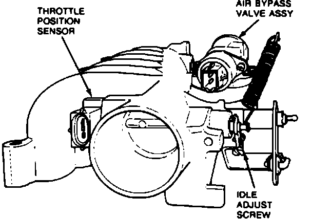 As the throttle plates move, the pivot arm moves along the curved resistor and receives a varying voltage signal. The ECA reads this signal and converts it into throttle plate angle. The voltage signal ranges from approximately one (1) volt at idle to approximately five (5) volts at wide open throttle.