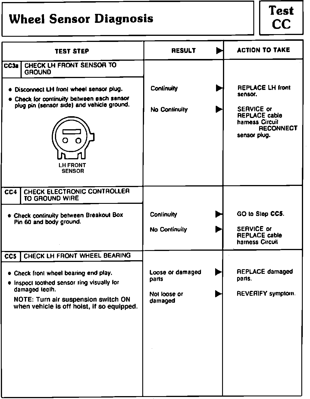 CC DTC 31, 35, 41, 55 or 75 LH ABS Brake Sensor and Circuit