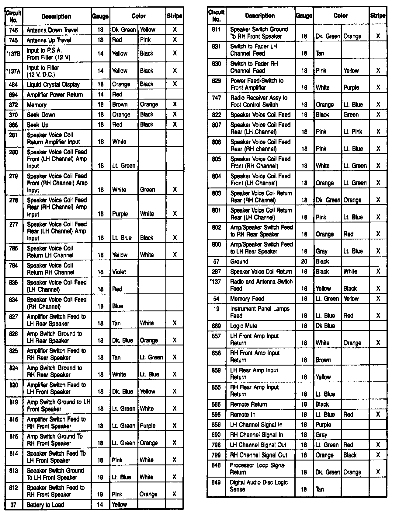 Circuit Description Chart: