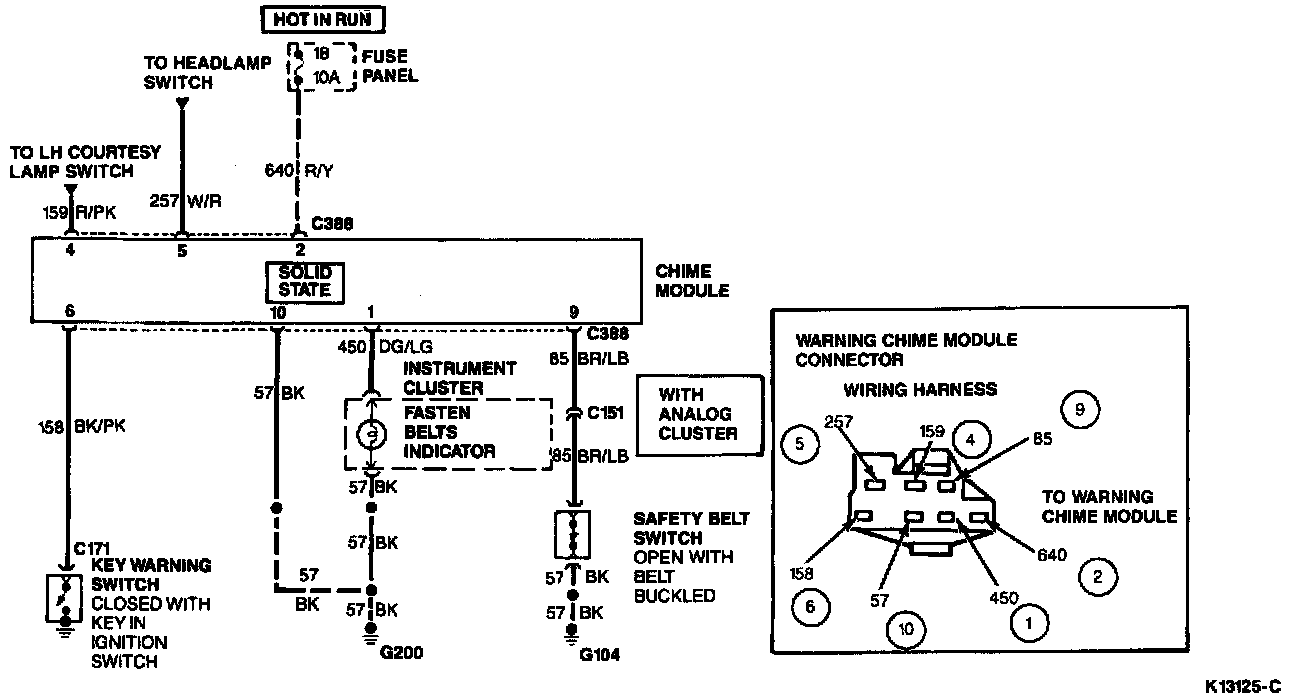 ^ When necessary to trace and/or service the various circuits, refer to the vehicle wiring diagrams and Warning Chime Inoperative. Pinpoint Tests