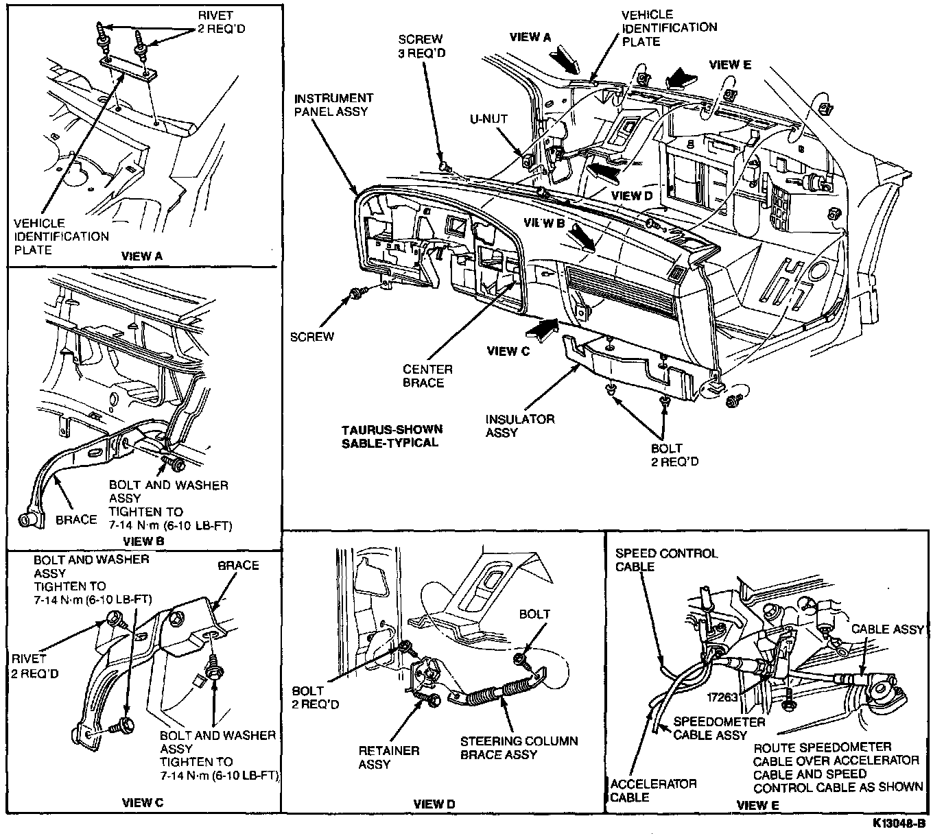 6. On column shift vehicles only, disconnect transmission selector indicator cable from column (one screw and cable loop).