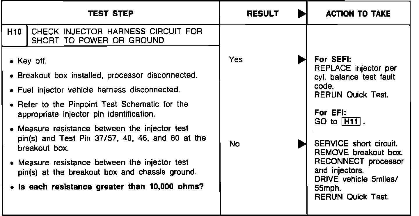 H10 - Check Injector Harness Circuit For Short to Power/Ground