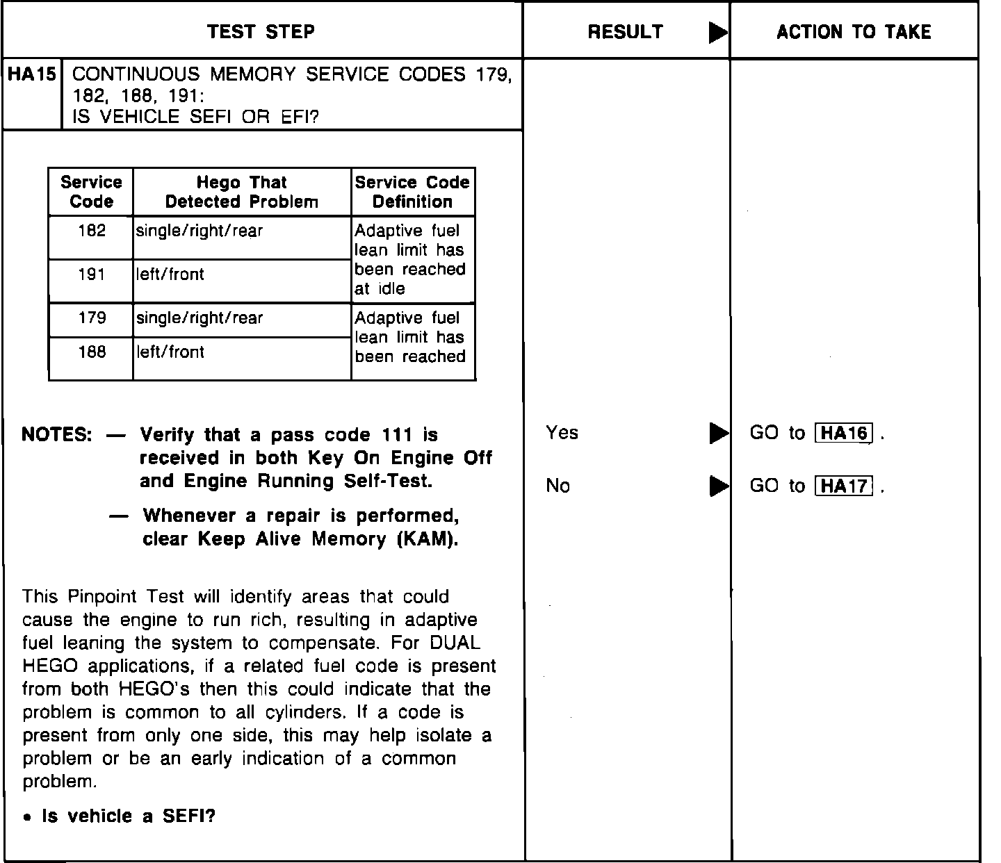 HA15 - Continuous Codes 179, 182, 188, 191: Is Vehicle SEFI/EFI