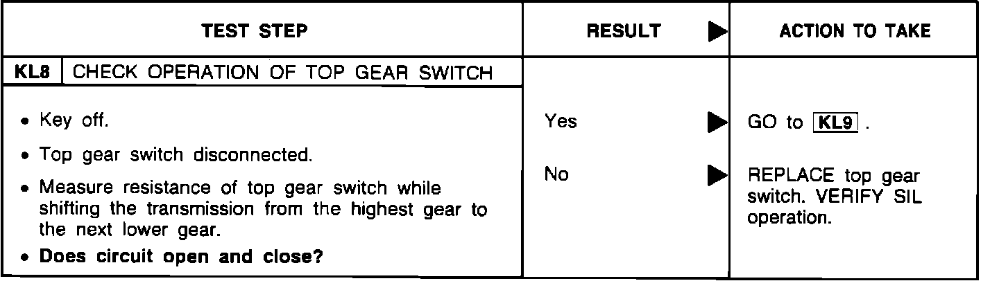 KL8 - Check Operation of Top Gear Switch