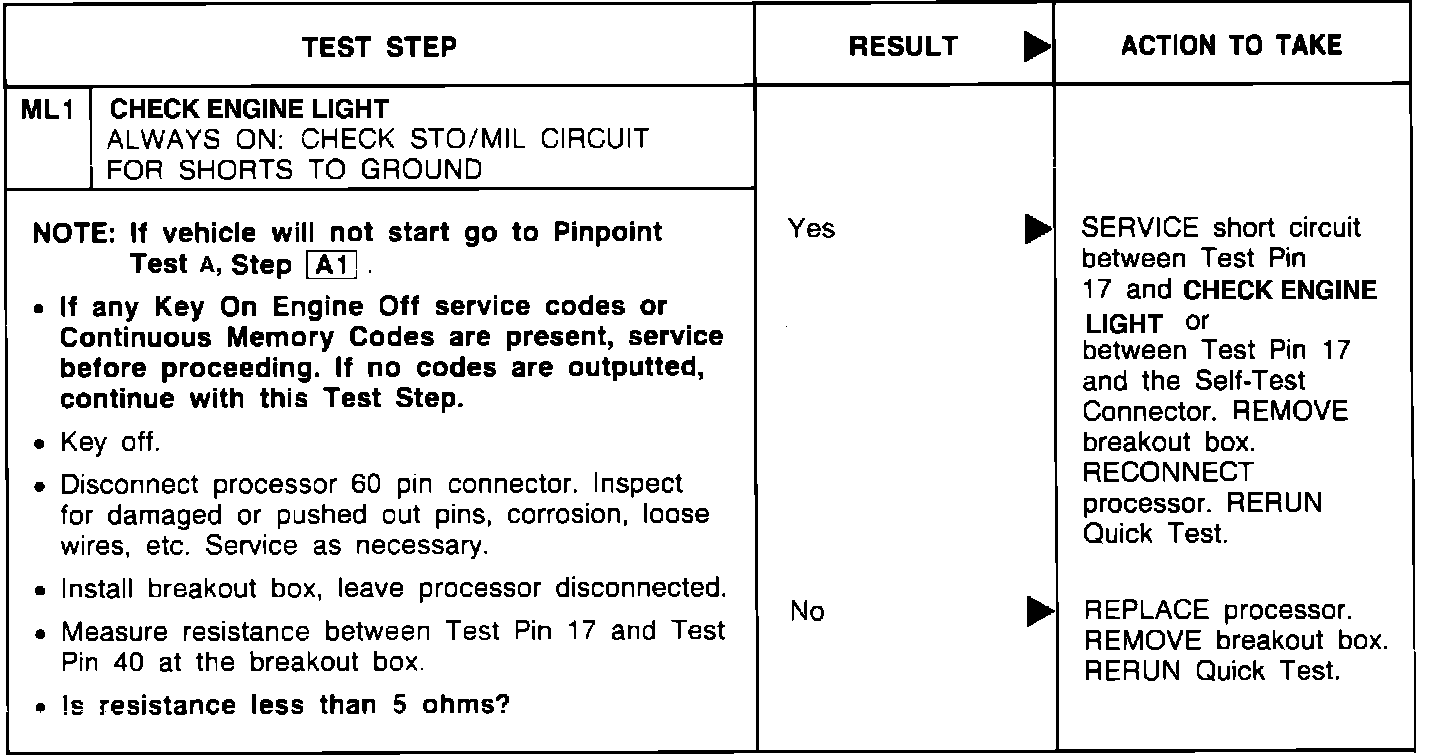 ML1 - "Check Engine" Light Always On: Check STO For Short