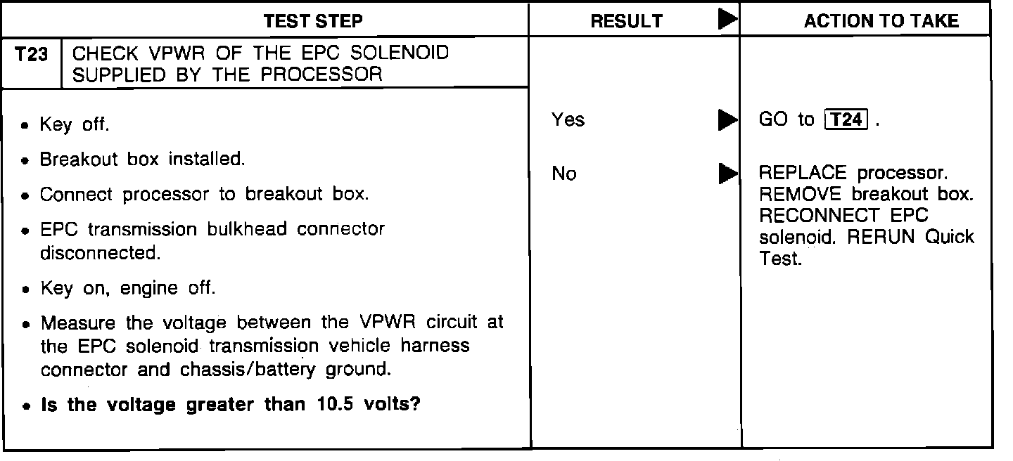 T23 - Check VPWR of the EPC Solenoid Supplied By the Processor