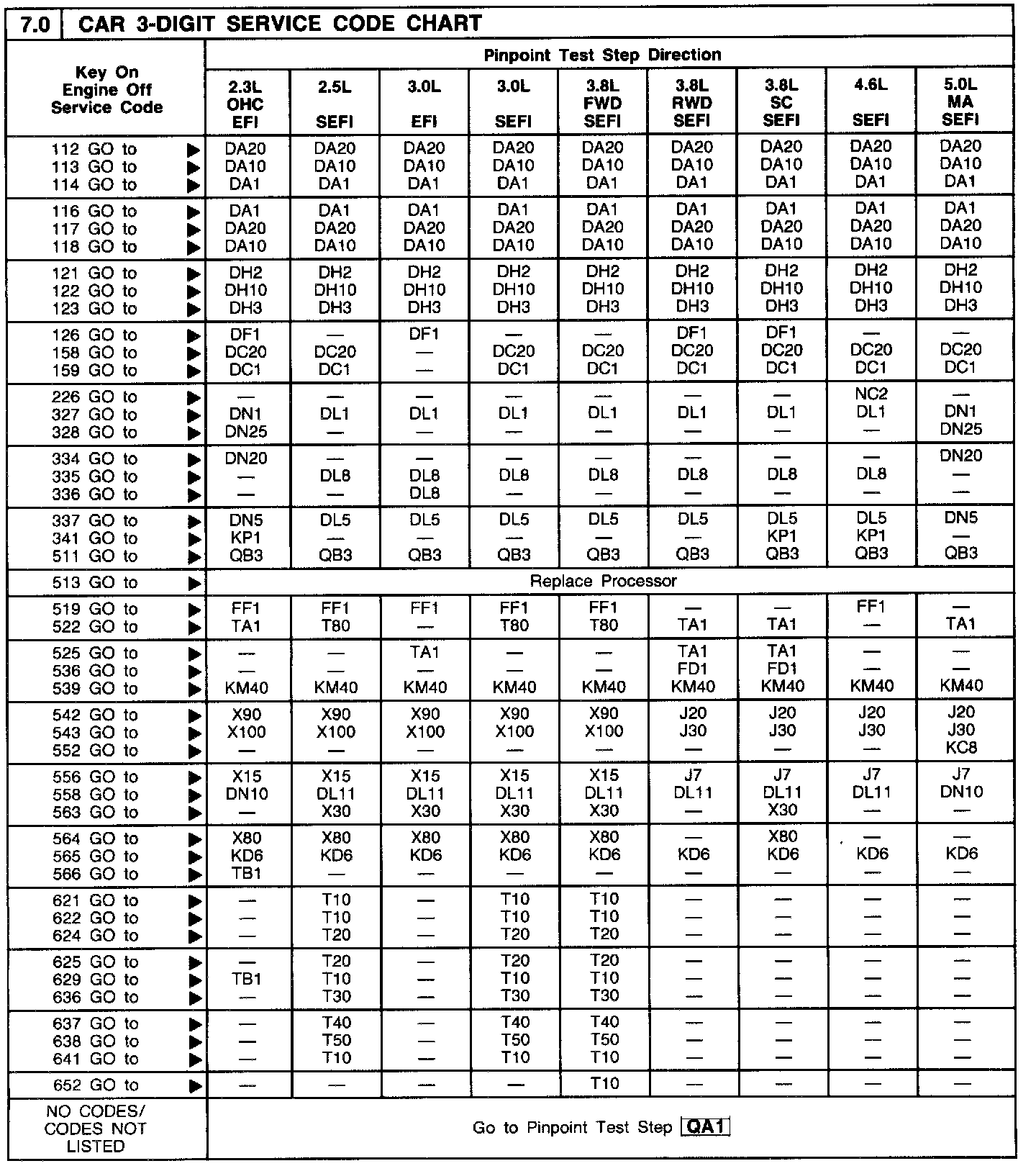 7.0 - Key On Engine Off (KOEO) 3 Digit Code Chart