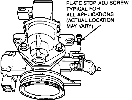 c Restart the engine and check idle speed using Self-Test (Mass Airflow models require the air intake hose to be reattached first). If engine stalled, crack open the plate with the throttle plate stop screw