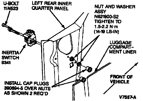 The inertia fuel shutoff switch is located in the luggage compartment on the door hinge support above the left hand inner wheel house.