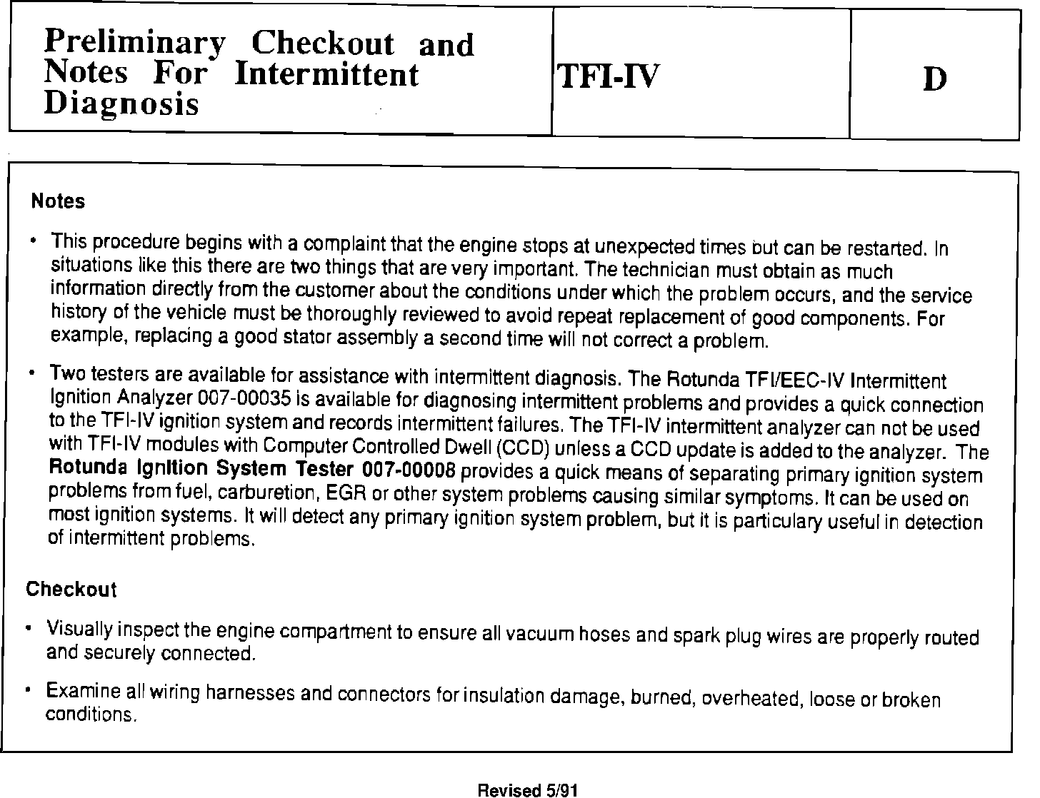 Checkout and Notes For Intermittent Diagnosis