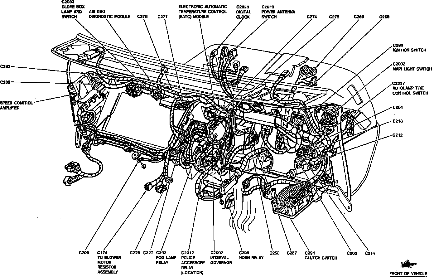 Instrument Panel Component Locations:
