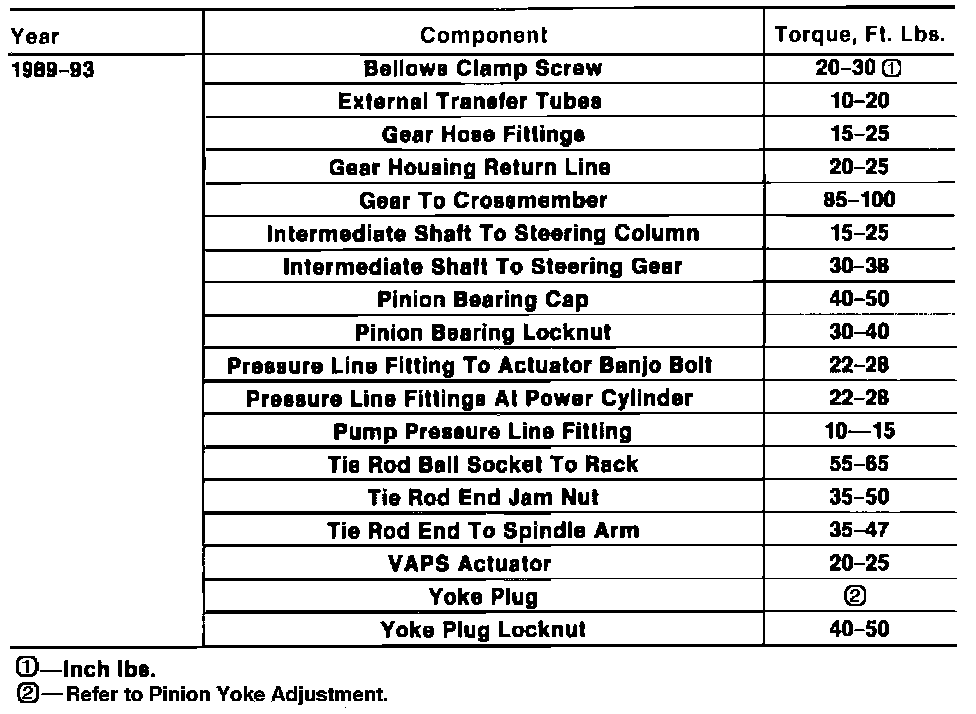 Tightening Specifications: