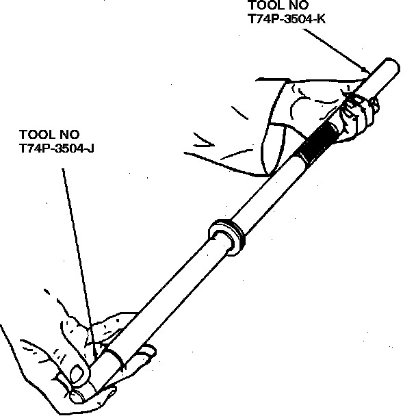 8. Position small diameter end of tool No. T78P-3504-M, or equivalent, into righthand side opening of gear housing.