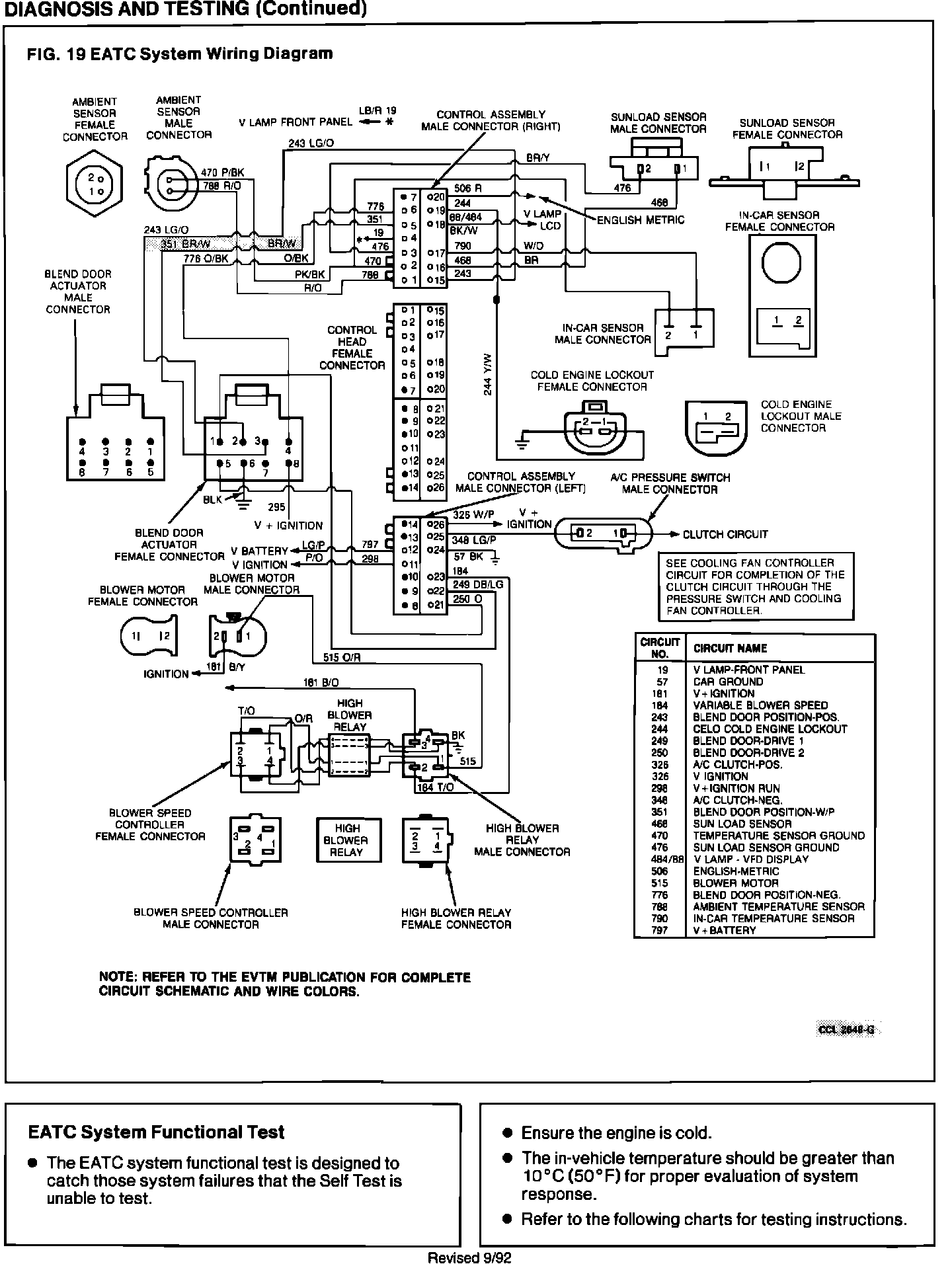 ^ SHOP MANUAL - 1992 - CLIMATE CONTROL SYSTEM - SERVICE - PAGES 12-00-29 AND 12-00-42 - WIRING CIRCUIT # 351 COLOR DESIGNATION REVISED