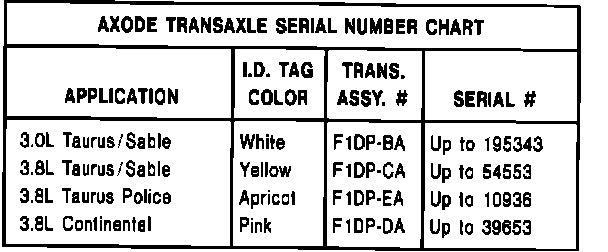 Any time a 1991 AXODE transaxle with an above serial number requires service to the main control, check the ID marking on the oil pump separator plate. If the main control separator plate service repair kit has not been installed, it should be installed at this time. This will update the main control to the latest 1991 AXODE transaxle level. Refer to Figures 1, 2 and 3 for proper separator plate identification.