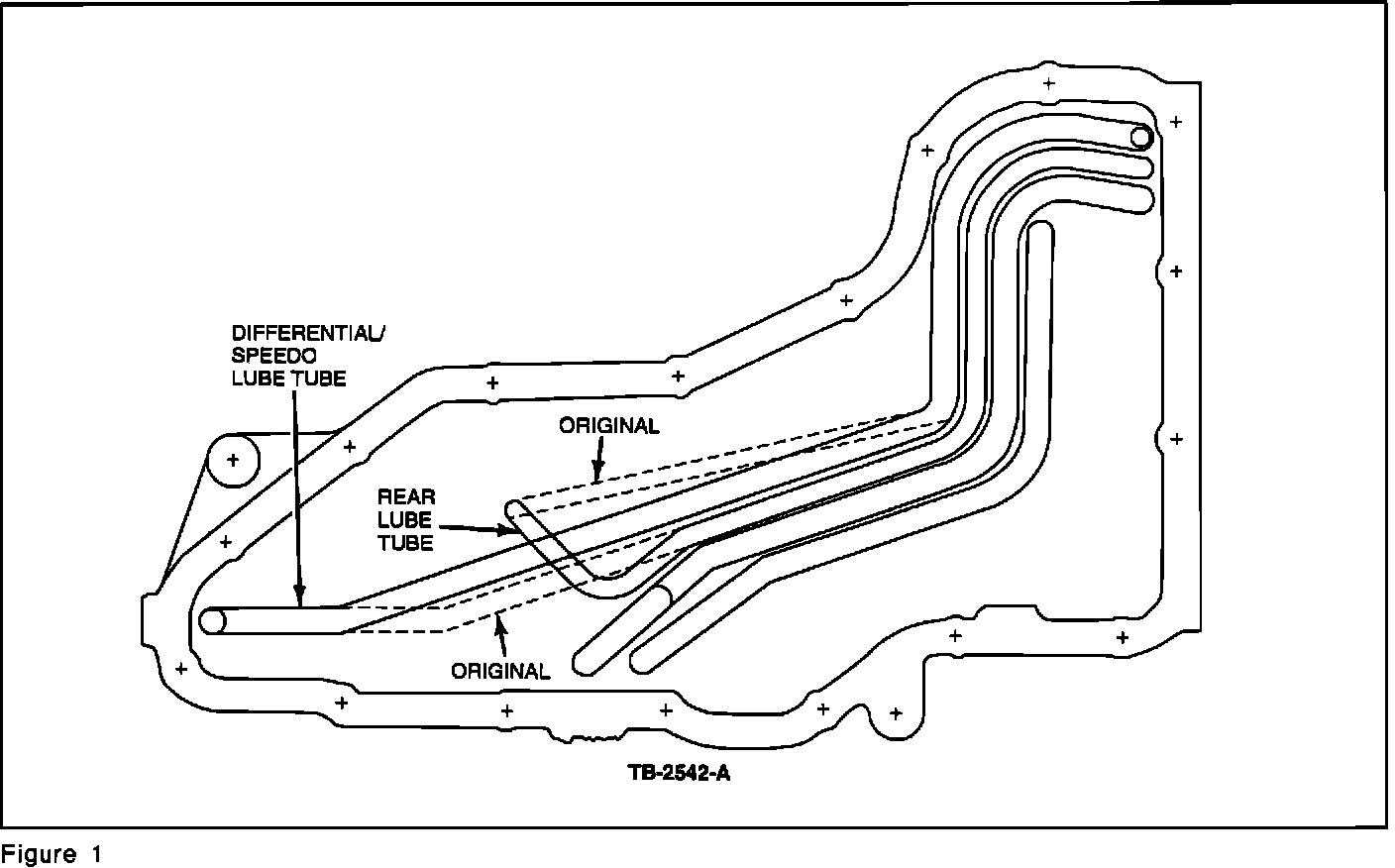 Rerouting excess fluid is no longer required with the deletion of the governor. The rear lube tube and the differential/speedo lube tube, Figure 1, have been reversed in the transaxle case. This requires the rear lube tube to cross over the differential/speedo tube. This crossover will allow for a larger volume of uninterrupted lube to the front planetary. This change has been incorporated in mid model year 1992 for all AXODE transaxles.