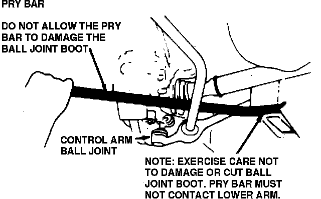 3. Remove and discard lower ball joint-to-steering knuckle attaching nut and pinch bolt, then using suitable pry bar, separate ball joint from steering knuckle. When separating ball joint from steering knuckle, use caution to avoid cutting or damaging ball joint boot.