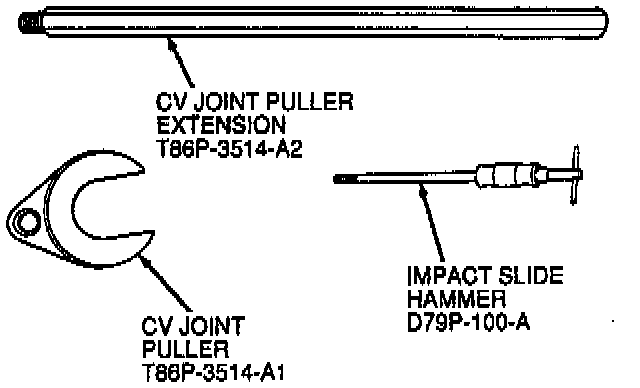 Fig. 2 Inboard CV joint removal tools. Except models equipped w/AXOD: