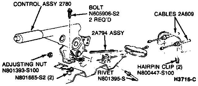 4. Position control assembly in 12th notch, then loosen adjusting nut enough to eliminate rear brake drag with the control assembly fully released.