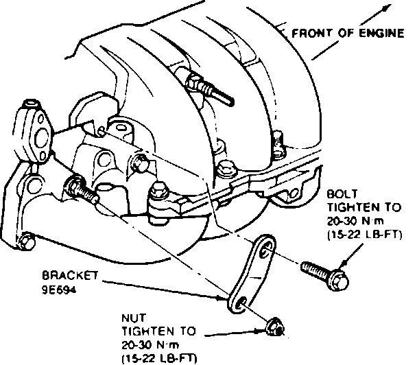 3. Reconnect manifold upper support bracket. Tighten bolts to 15-22 lb. ft. (20-30 N-m).