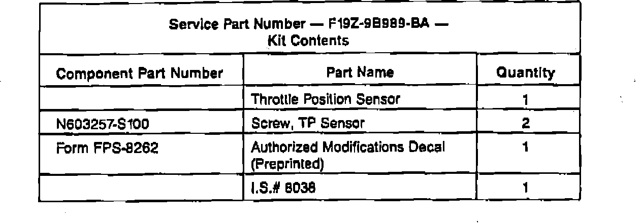 1. Inspect throttle position (TP) sensor. If TP sensor part number is E83F-9B889-AA and does not have a yellow dot, replace TP sensor using service part kit F1DZ-9B989-BA.