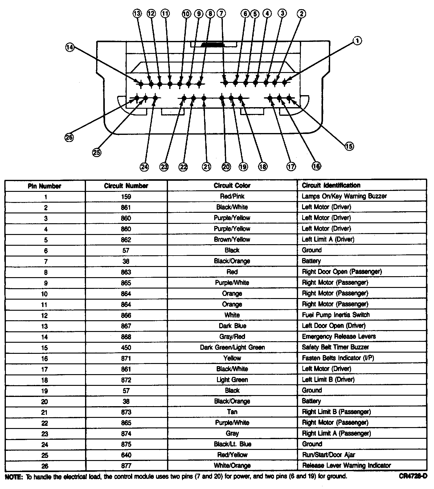 NOTE: To handle the electrical load, the control module uses two pins (7 and 20) for power, and two pins (6 and 19) for ground.