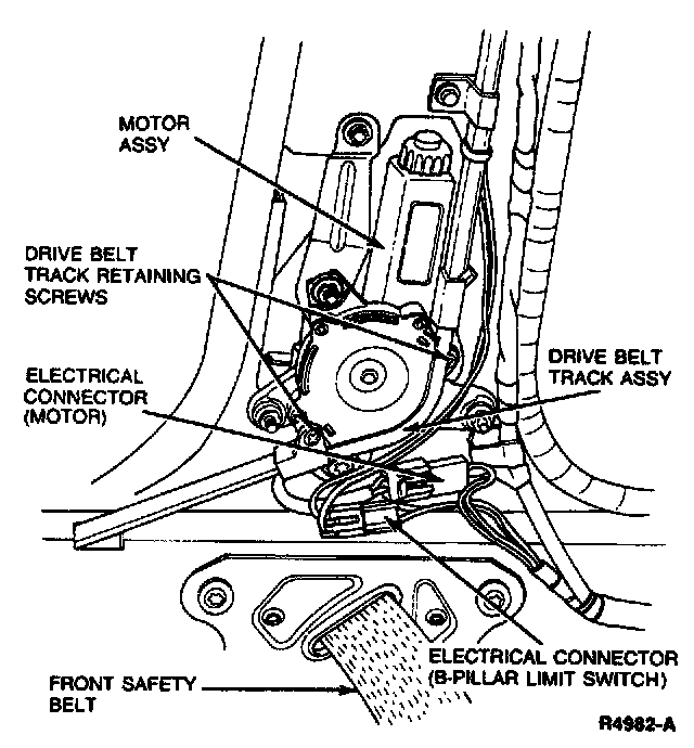 3. Remove one screw from vertical drive belt guide adjacent to motor. Slide drive belt track down and out of the way for motor removal.
