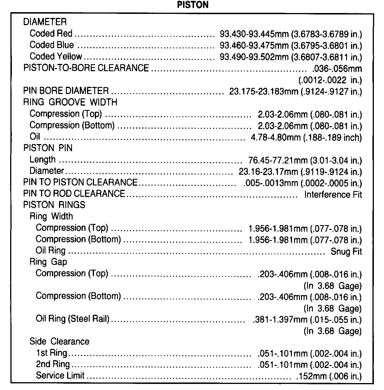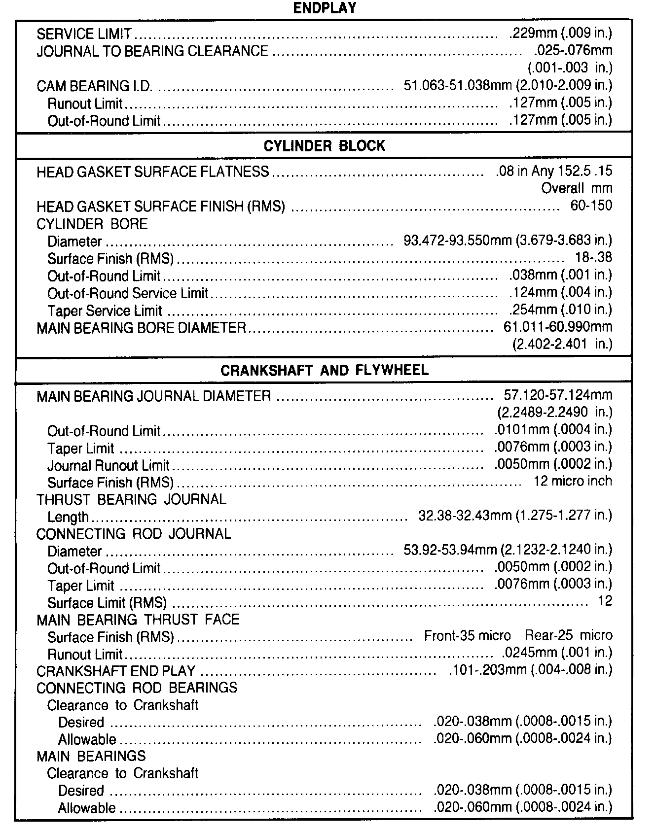 General Engine Specifications