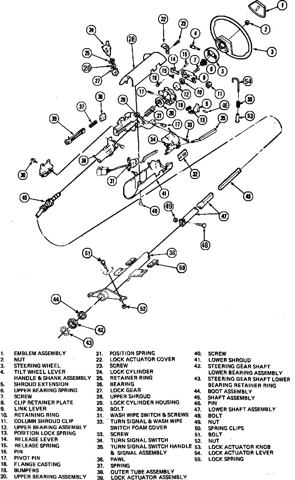 Fig. 10 Exploded View Of Tilt Steering Column. 1989 Tempo & Topaz: