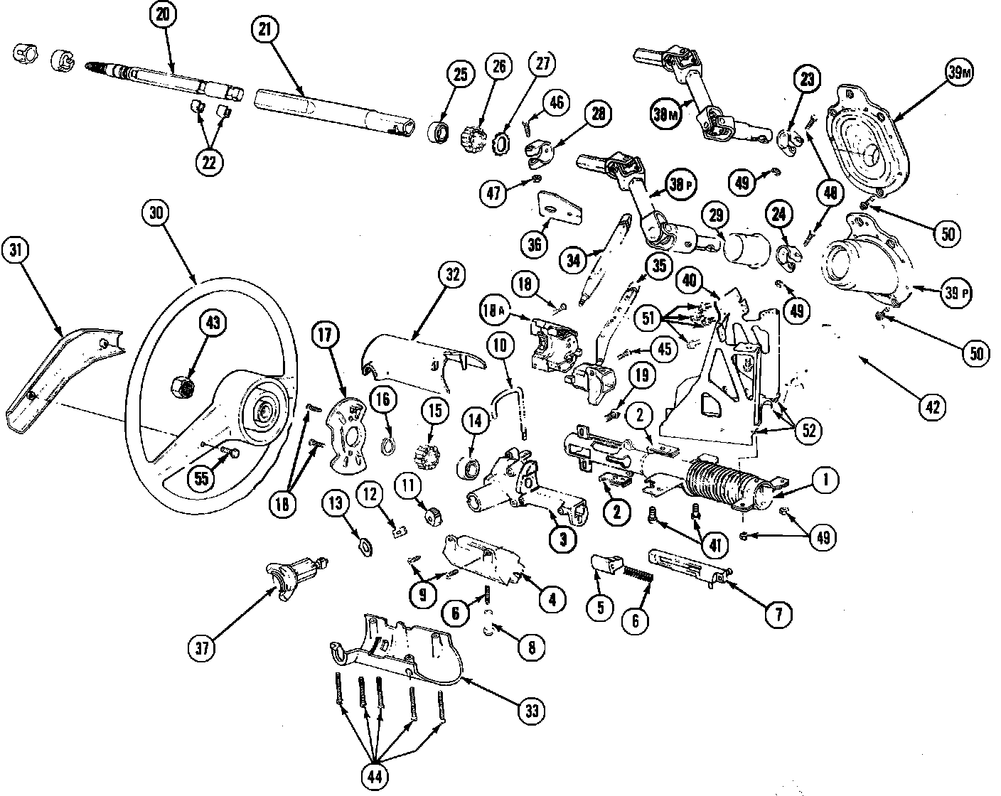 Fig. 10 Exploded View Of Tilt Steering Column. 1989 Tempo & Topaz: