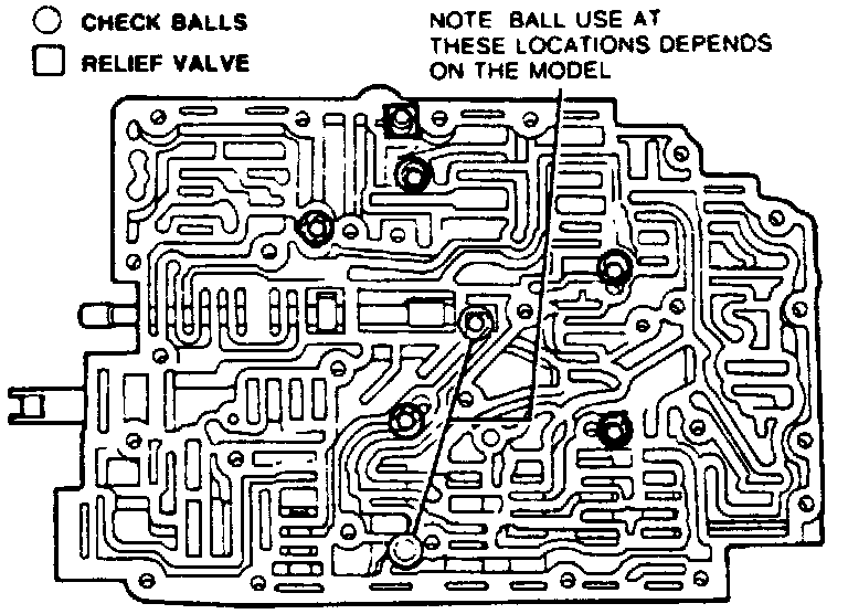 NOTE: Only Tempo & Topaz models equipped with 2.3L engines use the lower check ball denoted "Check Ball Location Dependent On Model Usage".