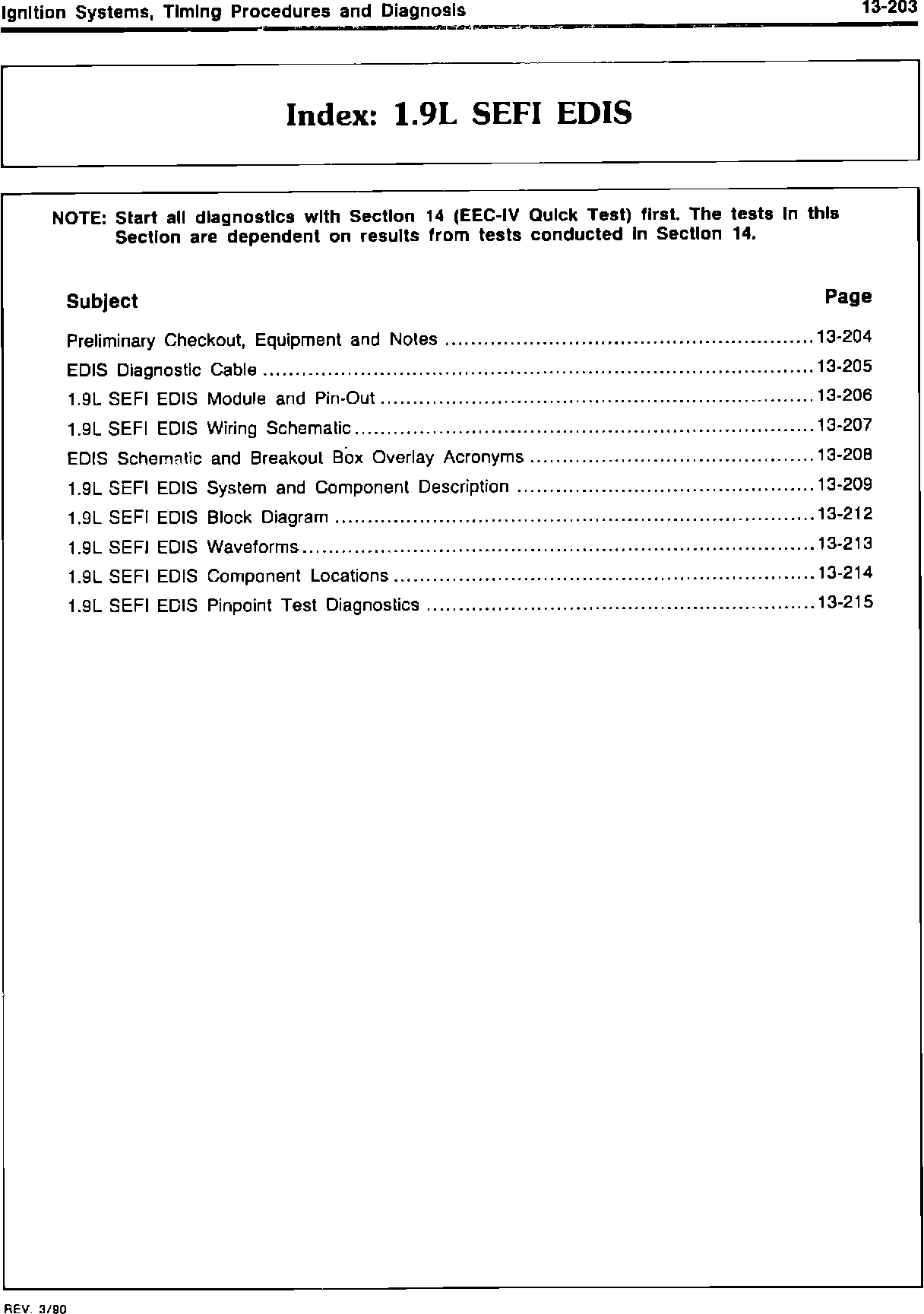 Ignition System Diagnostic Procedure (EDIS) 1.9L SEFI