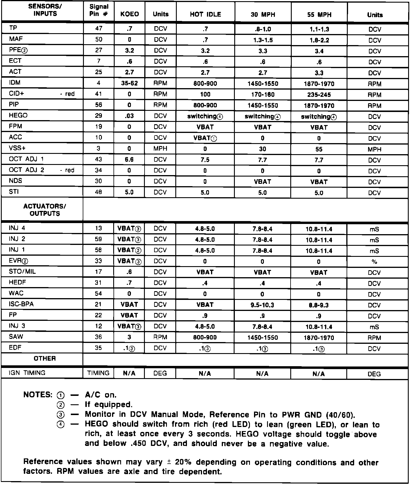Normal Scan Data Values (Includes PIDs)