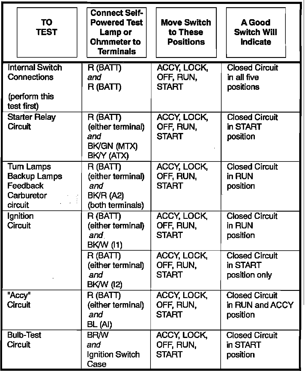 Ignition Switch: Testing and Inspection