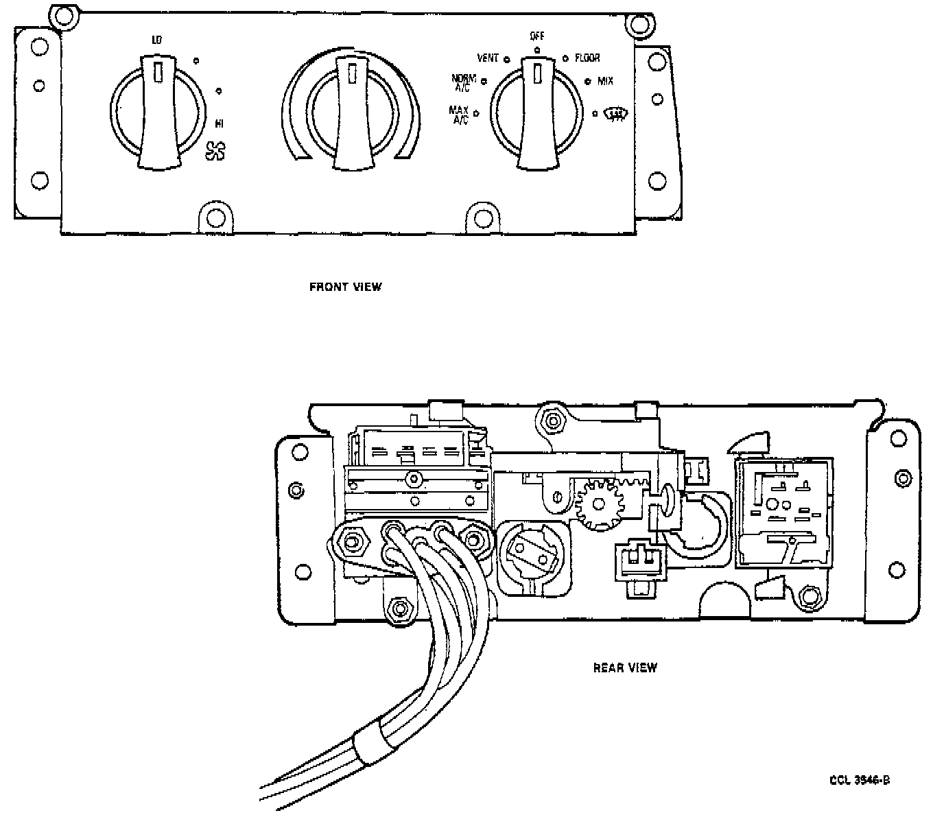 4. Pull the control assembly from the instrument panel opening and disconnect the wire connectors from the control assembly.