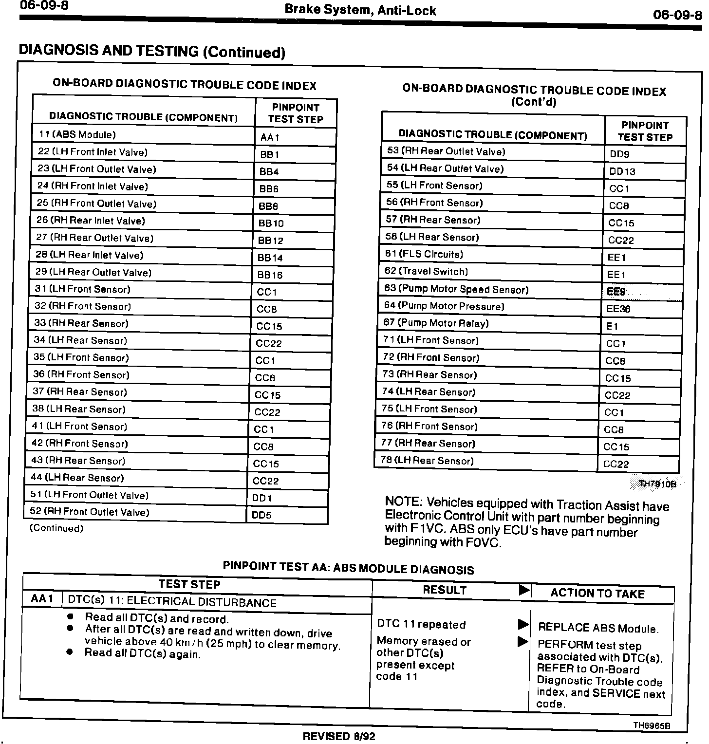 SHOP MANUAL - 1992 - PAGE 06-09-8 - ANTI-LOCK BRAKE SYSTEM SERVICE CODE 63 REVISED