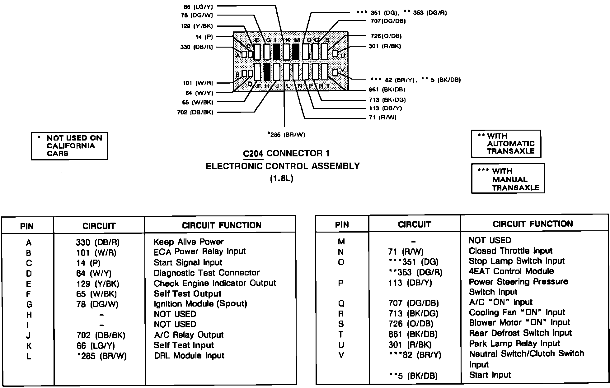 Electronic Control Assembly (ECA) Connector 1 C204: