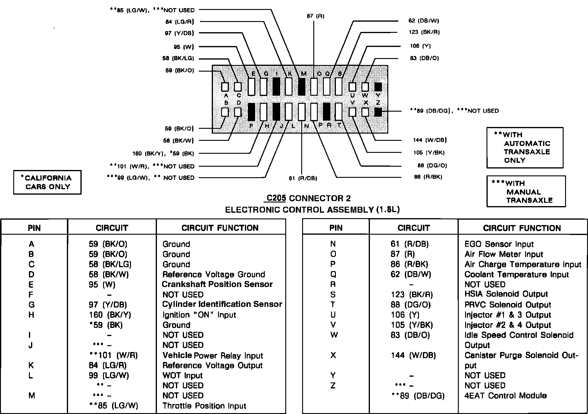 Electronic Control Assembly (ECA) Connector 2 C205: