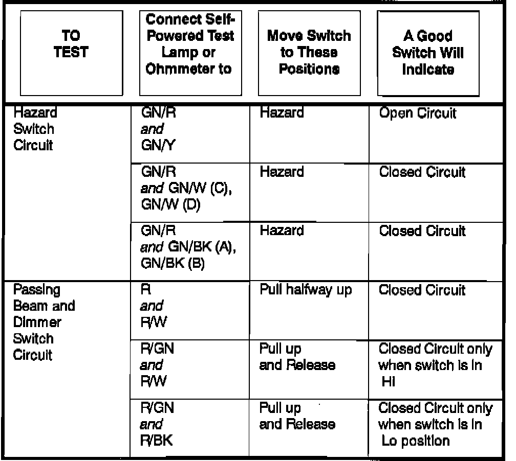Headlamp Dimmer Switch: Testing and Inspection