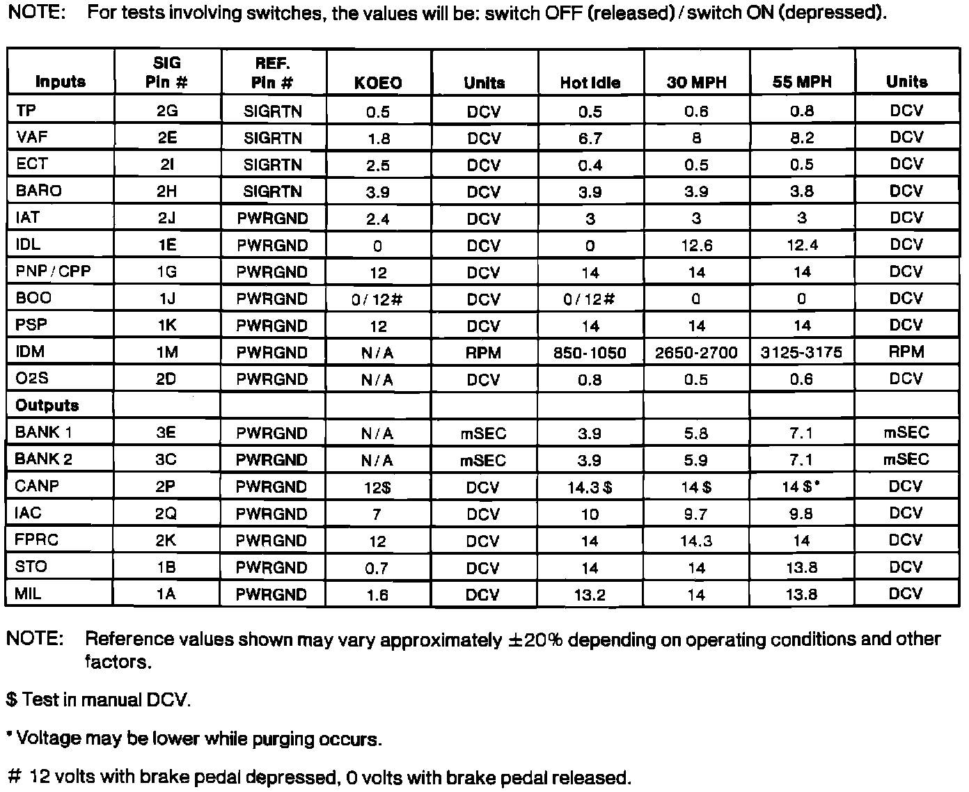 Normal Scan Data Values (Includes PID's)