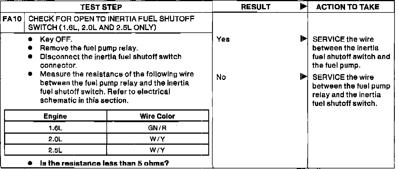 FA10 - Open To Inertia Fuel Shutoff Switch: