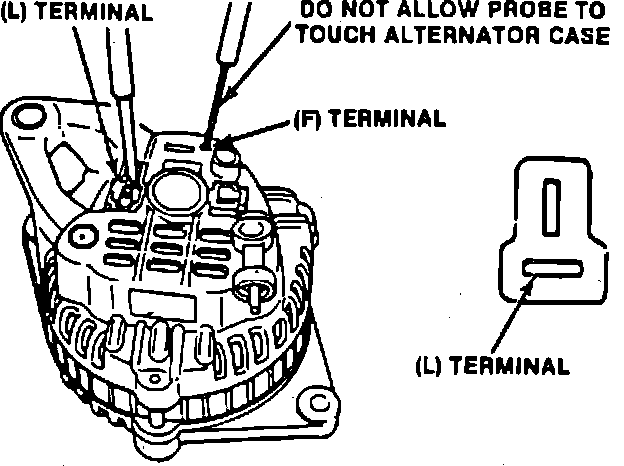 3. If reading obtained in previous step is 3-6 ohms, field coil is satisfactory. Proceed to "L" TERMINAL VOLTAGE TEST.