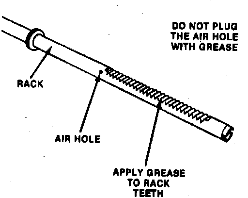 6. Apply grease to rack teeth, then position rack seal protector D83P-3504-K or equivalent over rack teeth. When applying grease teeth, do not cover rack air hole, Fig. 6.