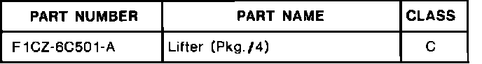 3. If the lifter noise is still present, locate the noisy/spongy lifter(s) and replace with a new lifter (F1CZ-6C501-A). Refer to the 1991 Escort/Tracer Service Manual, Section 03-01A, or the 1991 Capri Service Manual, Section 21-10, for service details.