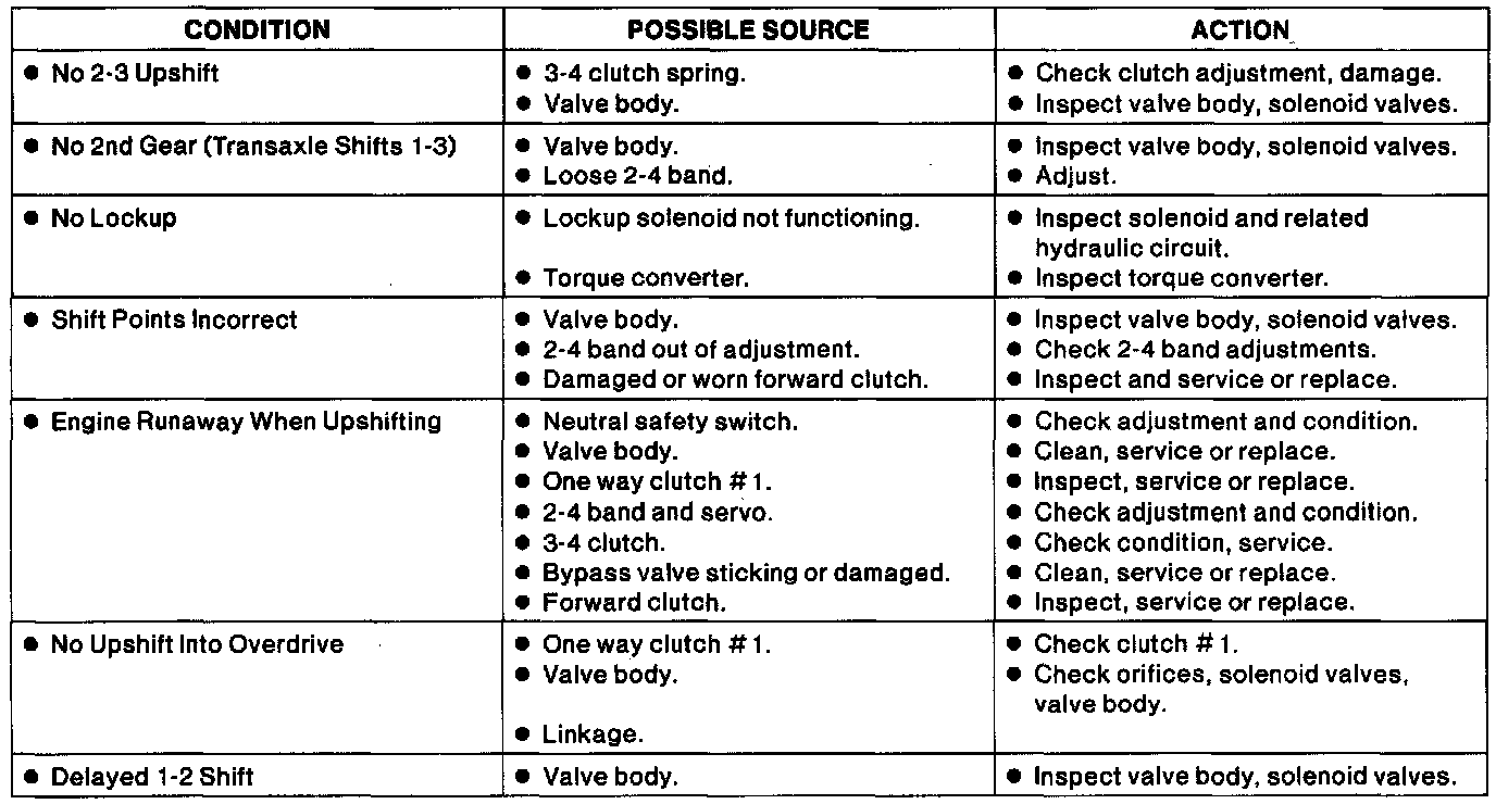 Upshift Diagnosis Chart:
