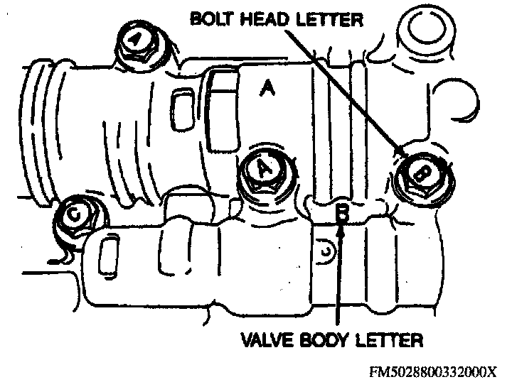 CAUTION: Each valve body bolt has a letter on the bolt head which matches the letter placed near the bolt hole.