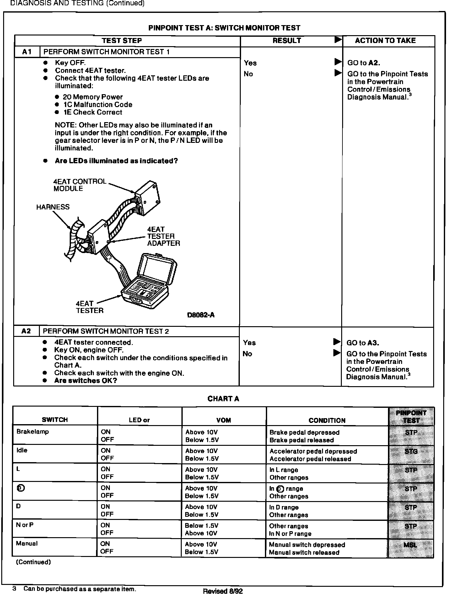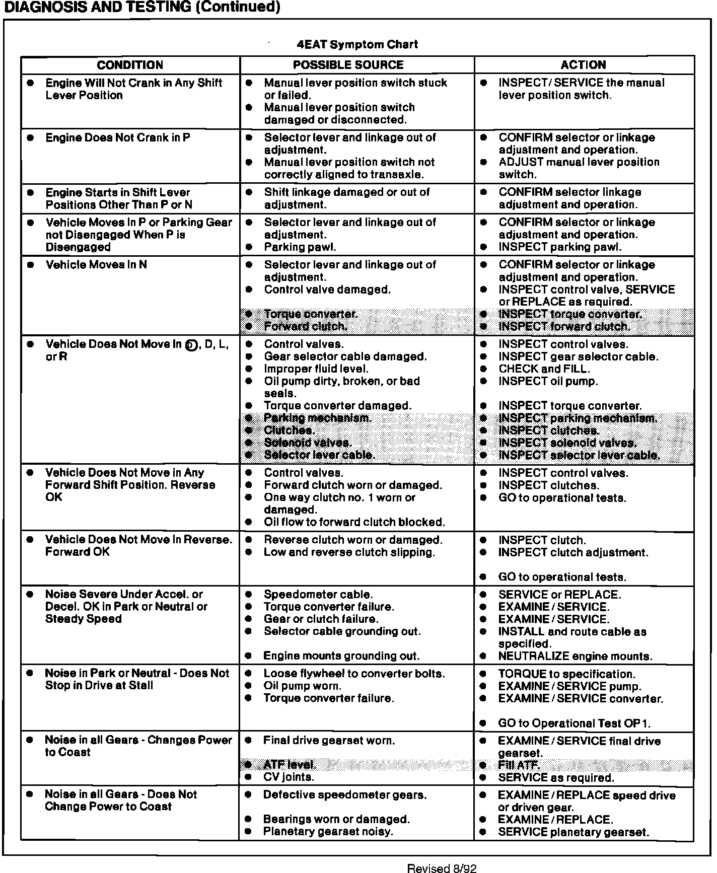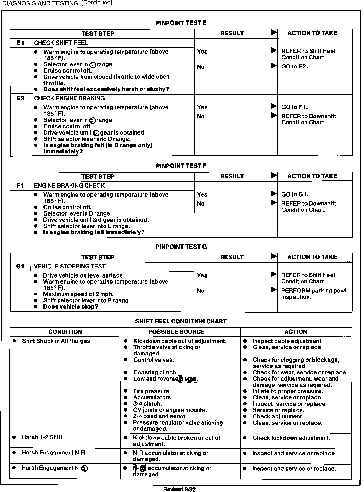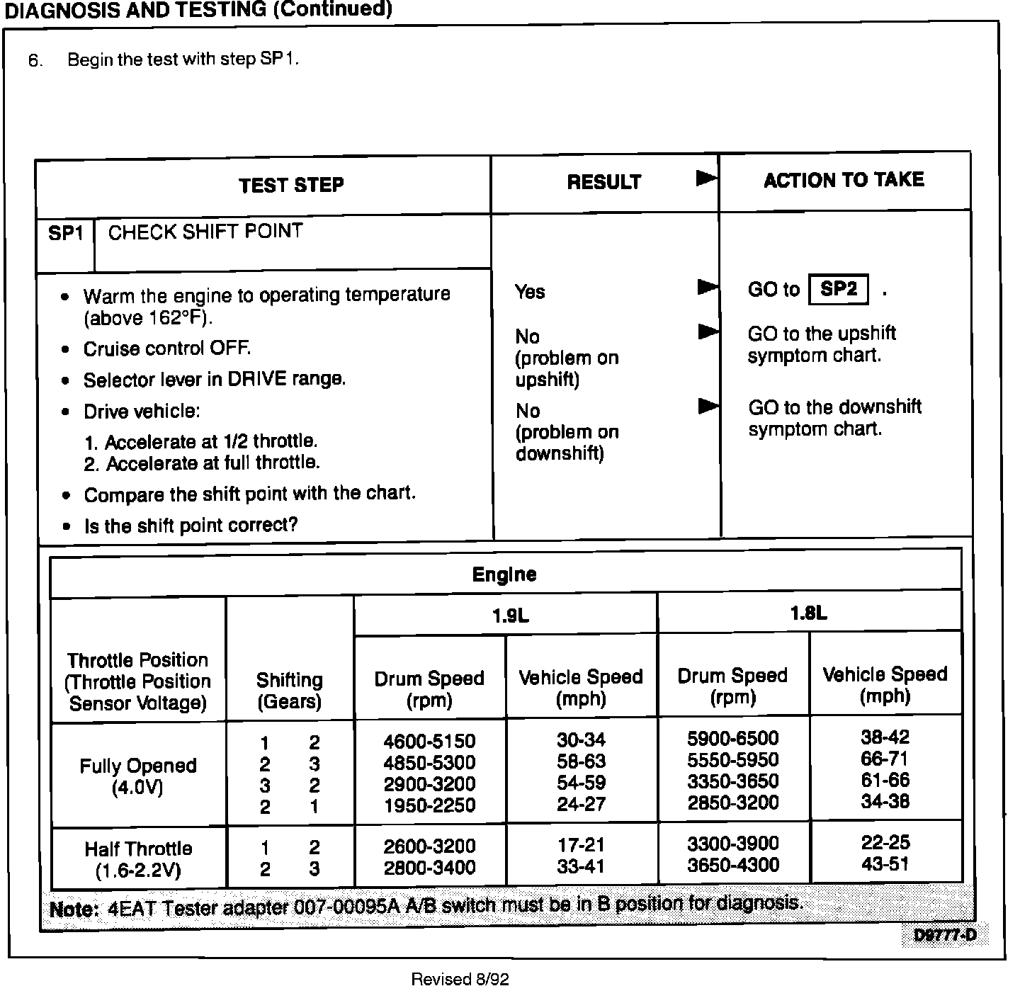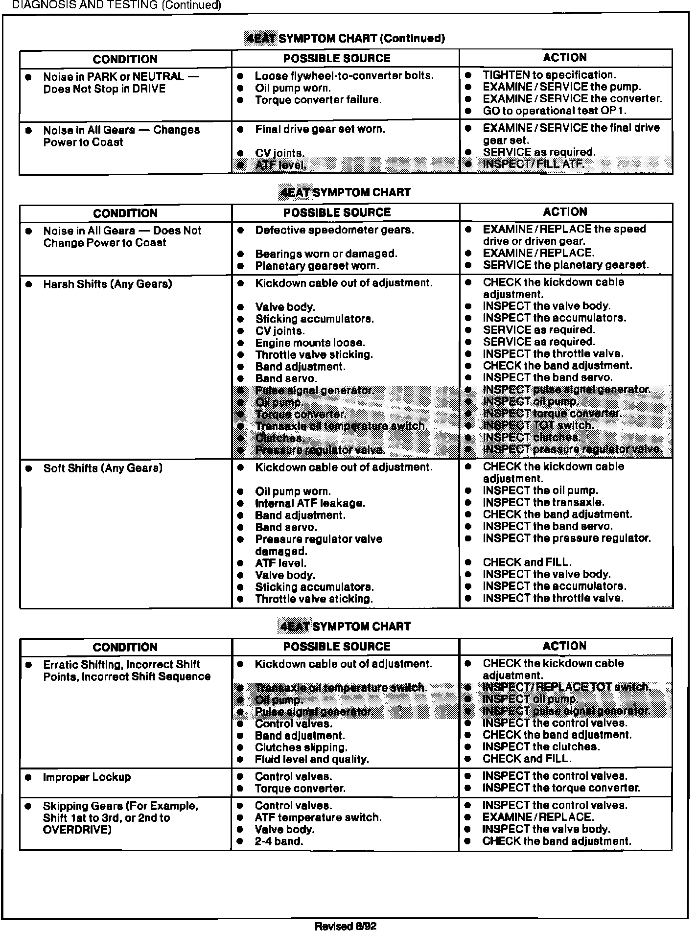^ SHOP MANUAL - 1992 - SECTION 07-01 - 4EAT TRANSAXLE DIAGNOSTIC INFORMATION REVISED