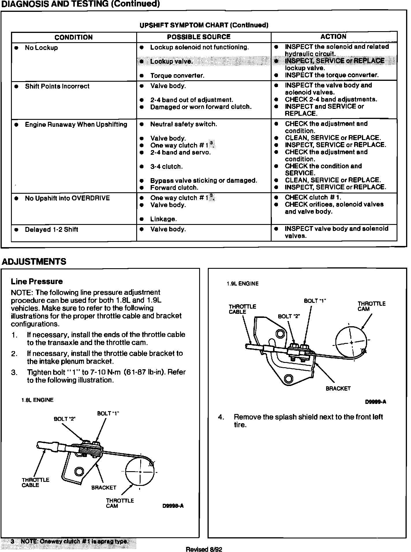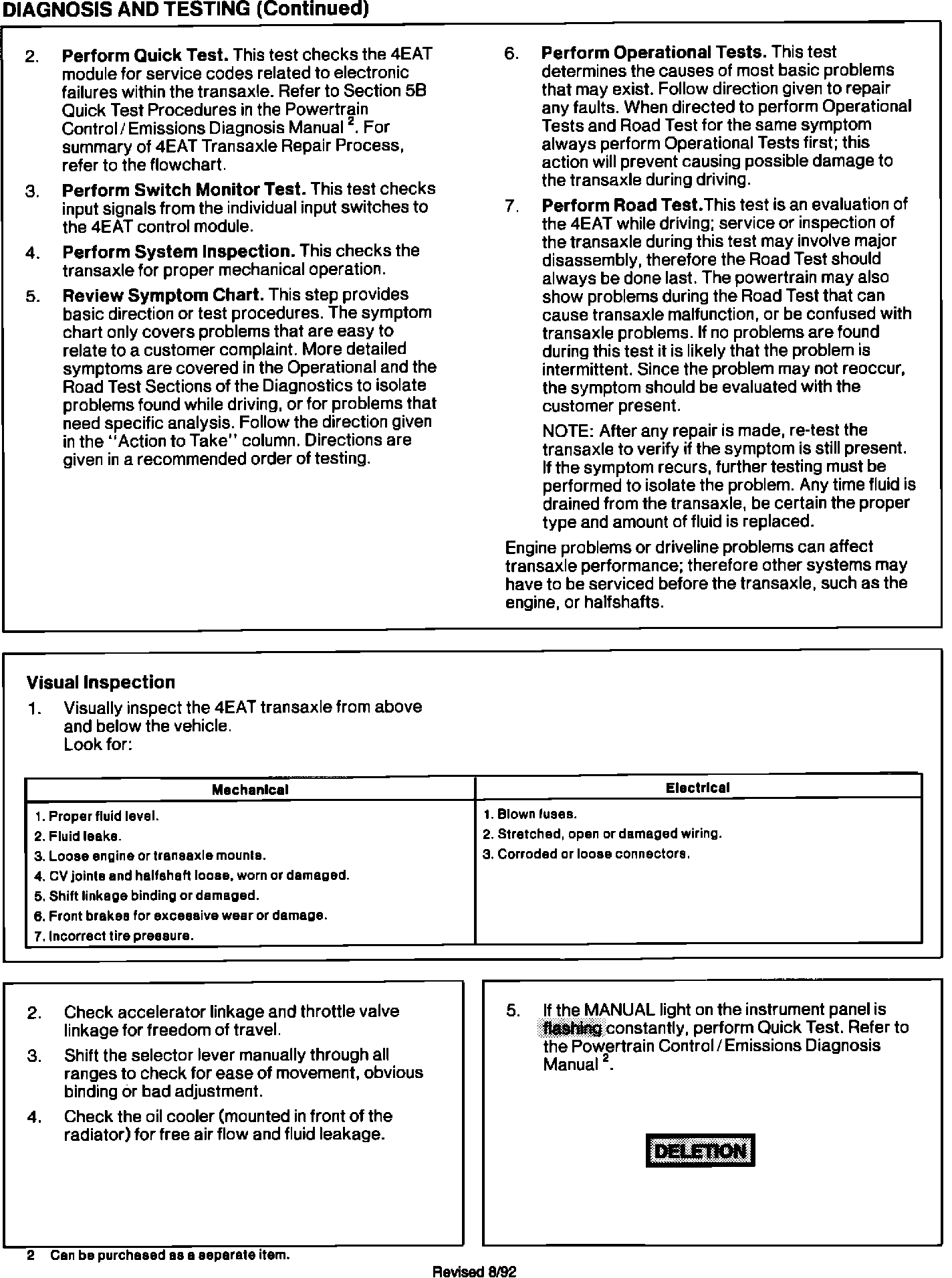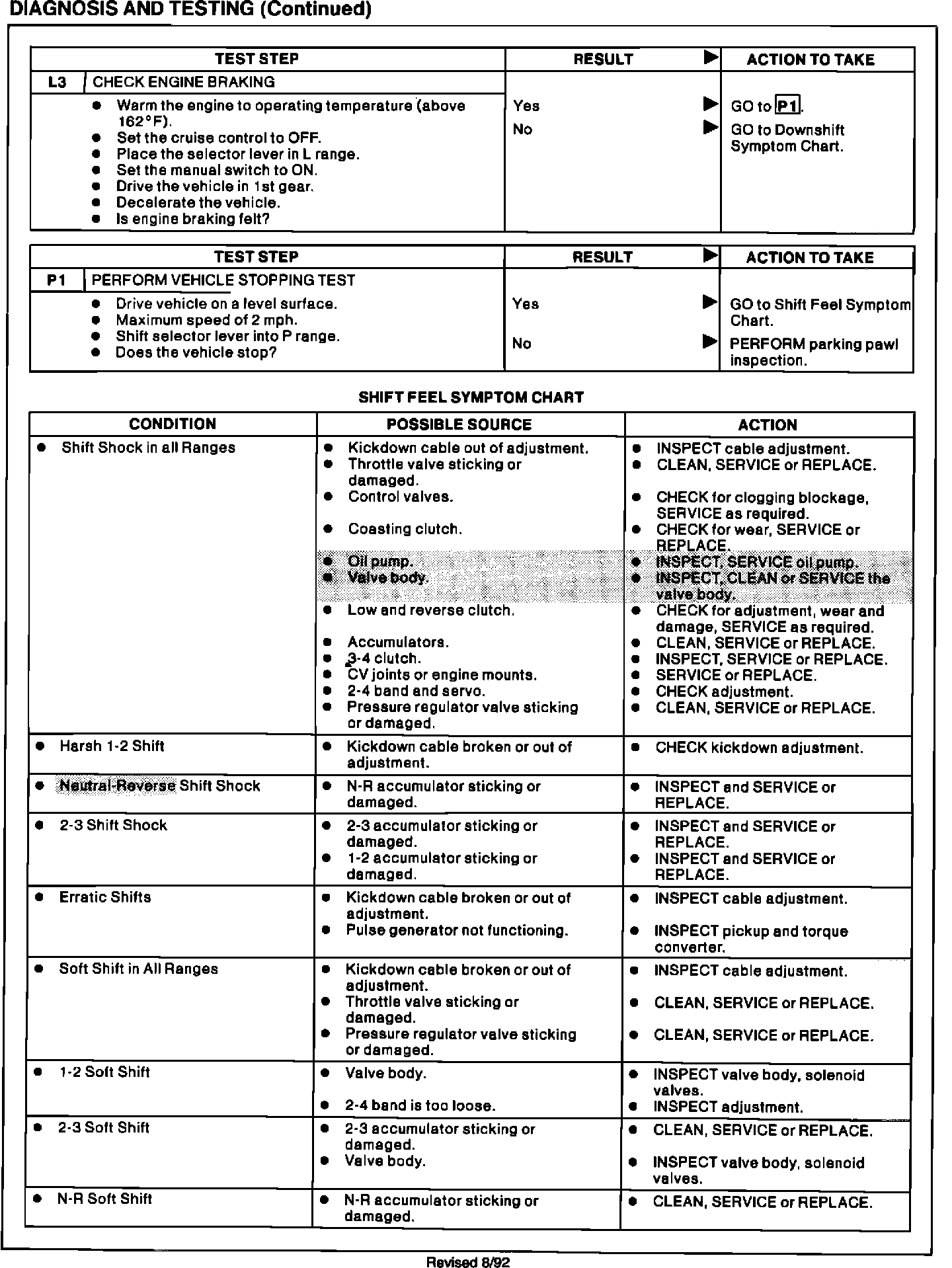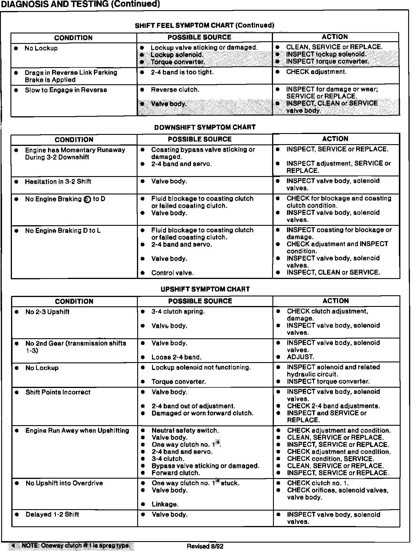^ SHOP MANUAL - 1992 - SECTION 07-01 - 4EAT TRANSAXLE DIAGNOSTIC INFORMATION REVISED