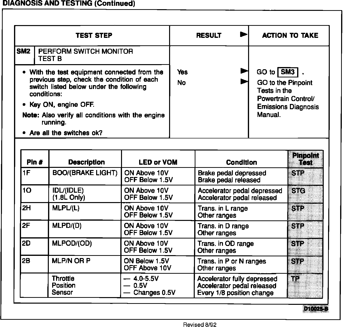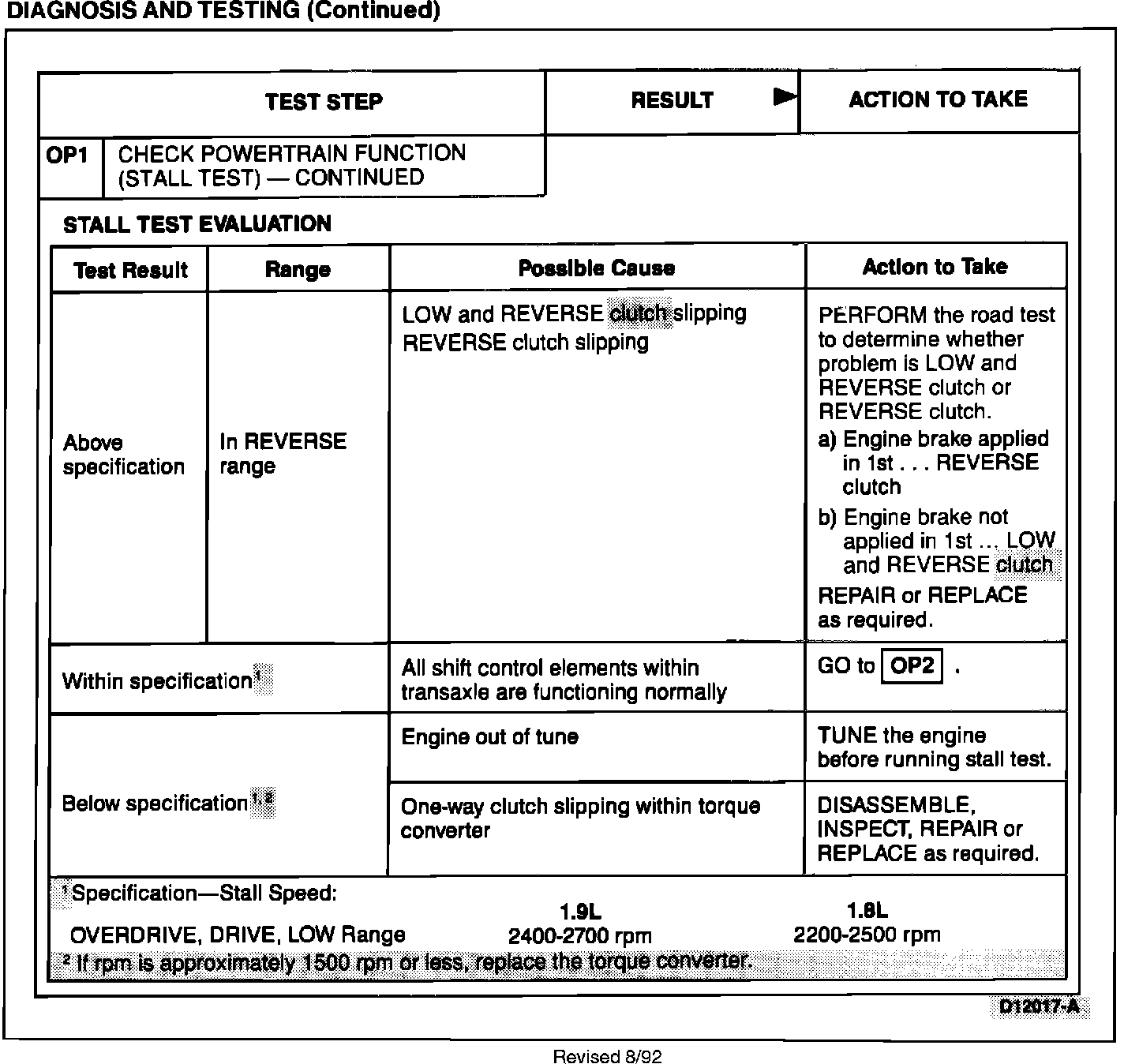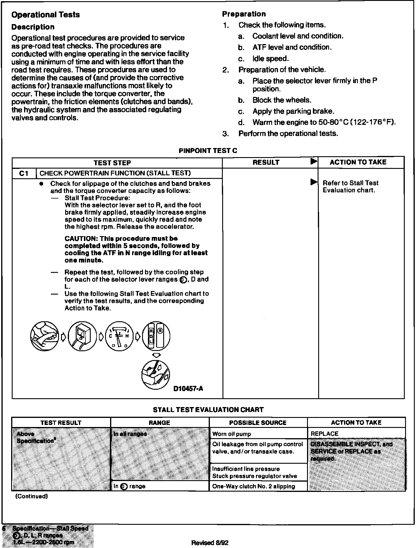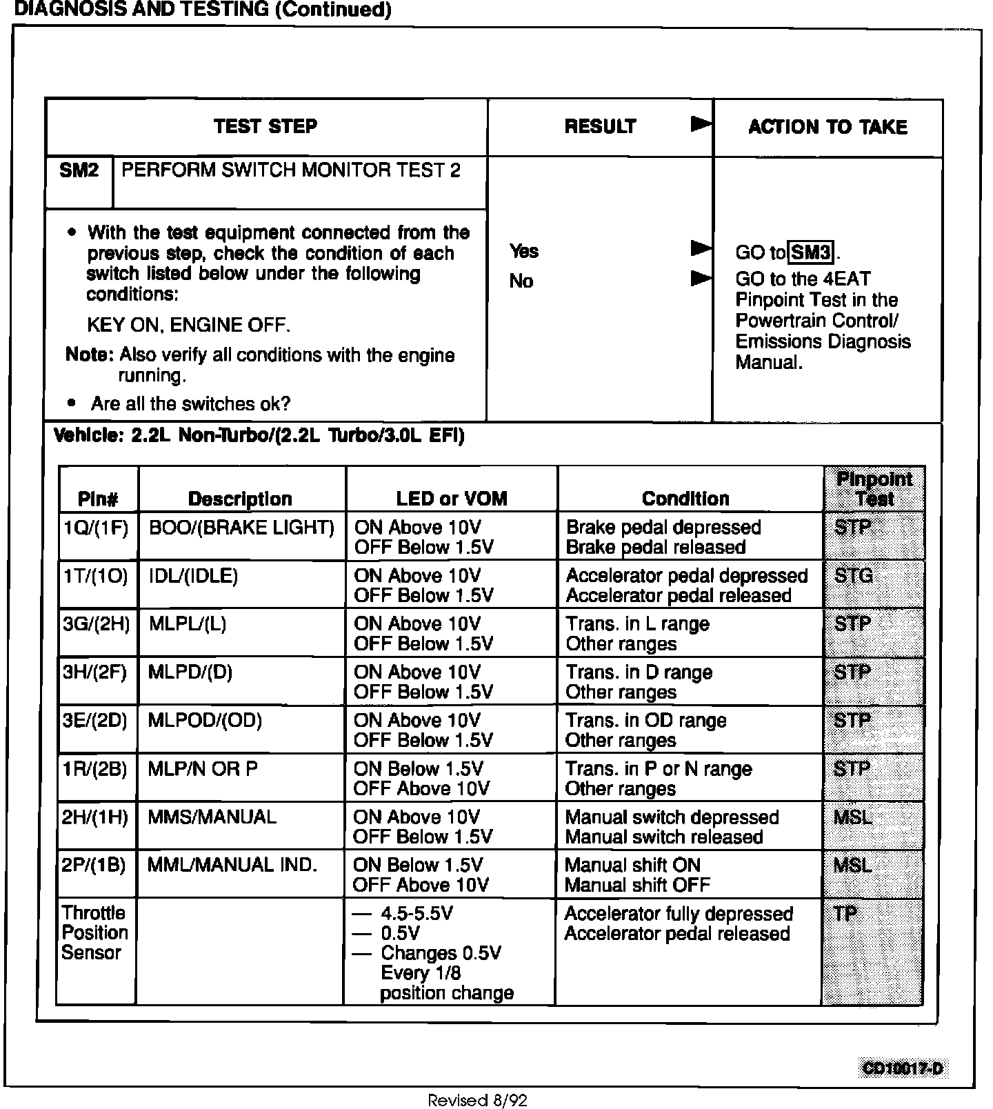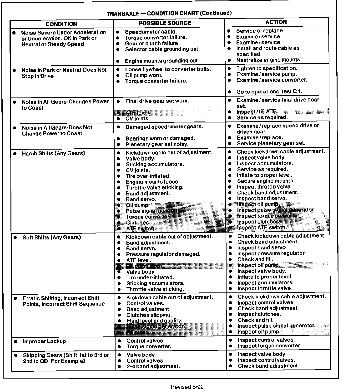 ^ SHOP MANUAL - 1992 - SECTION 07-01 - 4EAT TRANSAXLE DIAGNOSTIC INFORMATION REVISED